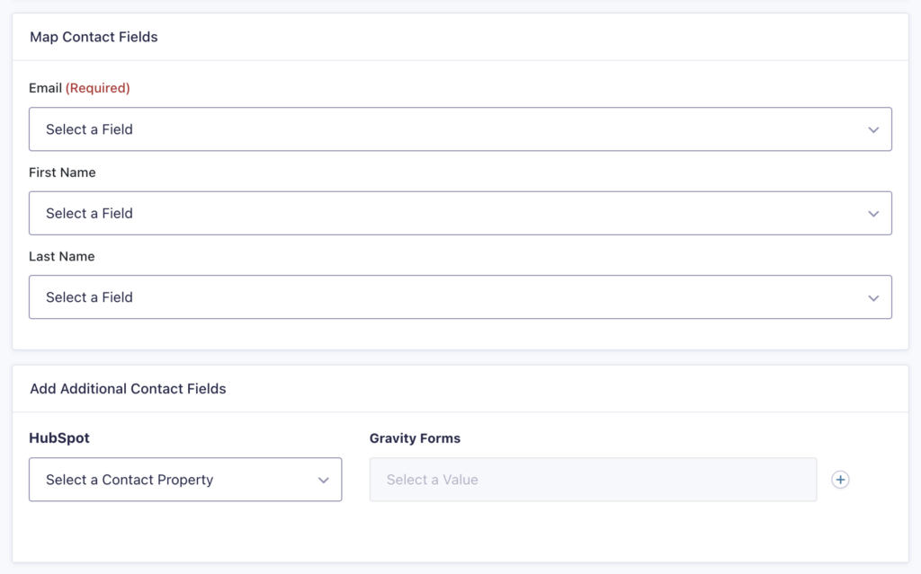 | Add Additional Contact Fields | Map the additional HubSpot Contact Information properties to the form field you wish it to be filled by. See Field Mapping section below. |