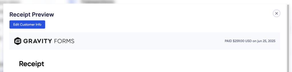 - Open the Receipt or Invoice. Click on the Edit Customer Info button.