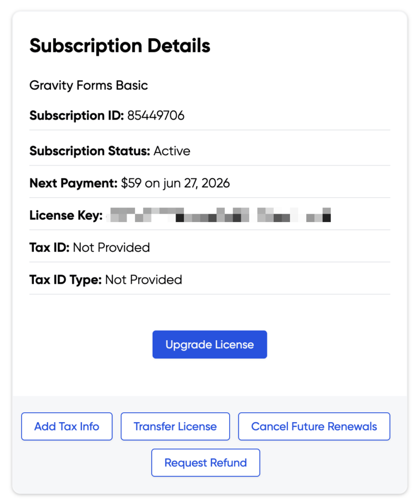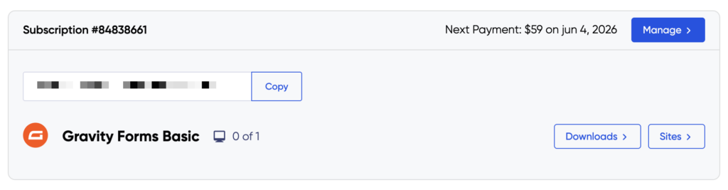 - Log in to your Gravity account page, find the license you would like to manage, and click Manage Subscription.