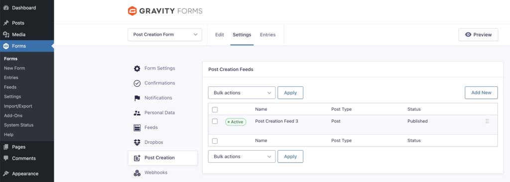 A feed is a configuration within Gravity Forms that defines how form submission data should be sent to an add-on or external service. Each time a user successfully submits your form, any active feeds associated with that form will process and send the relevant data according to your configuration.